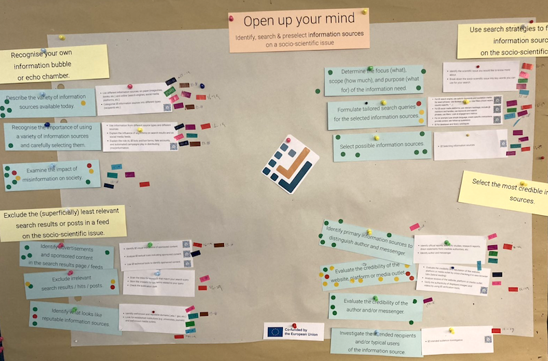 Osallistujat tekivät ryhmissä myös harjoituksen, jossa he pohtivat kuinka he opettaisivat informaatiolukutaidon eri osa-alueita oppilaille erilaisten yhteiskunnallisten teemojen käsittelyn yhteydessä. Miten esimerkiksi pikamuodin, ikääntymisen tai nälänhädän kaltaisten oppituntiteemojen yhteydessä voidaan opettaa kriittisen ajattelun taitoja ja kriittistä informaatiolukutaitoa?